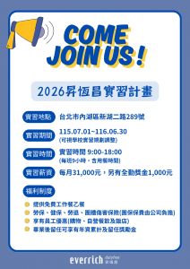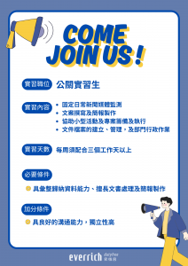 以上實習資訊詳如附件,感謝您的支持與協助,我們期待與更多優秀的同學相遇哦!